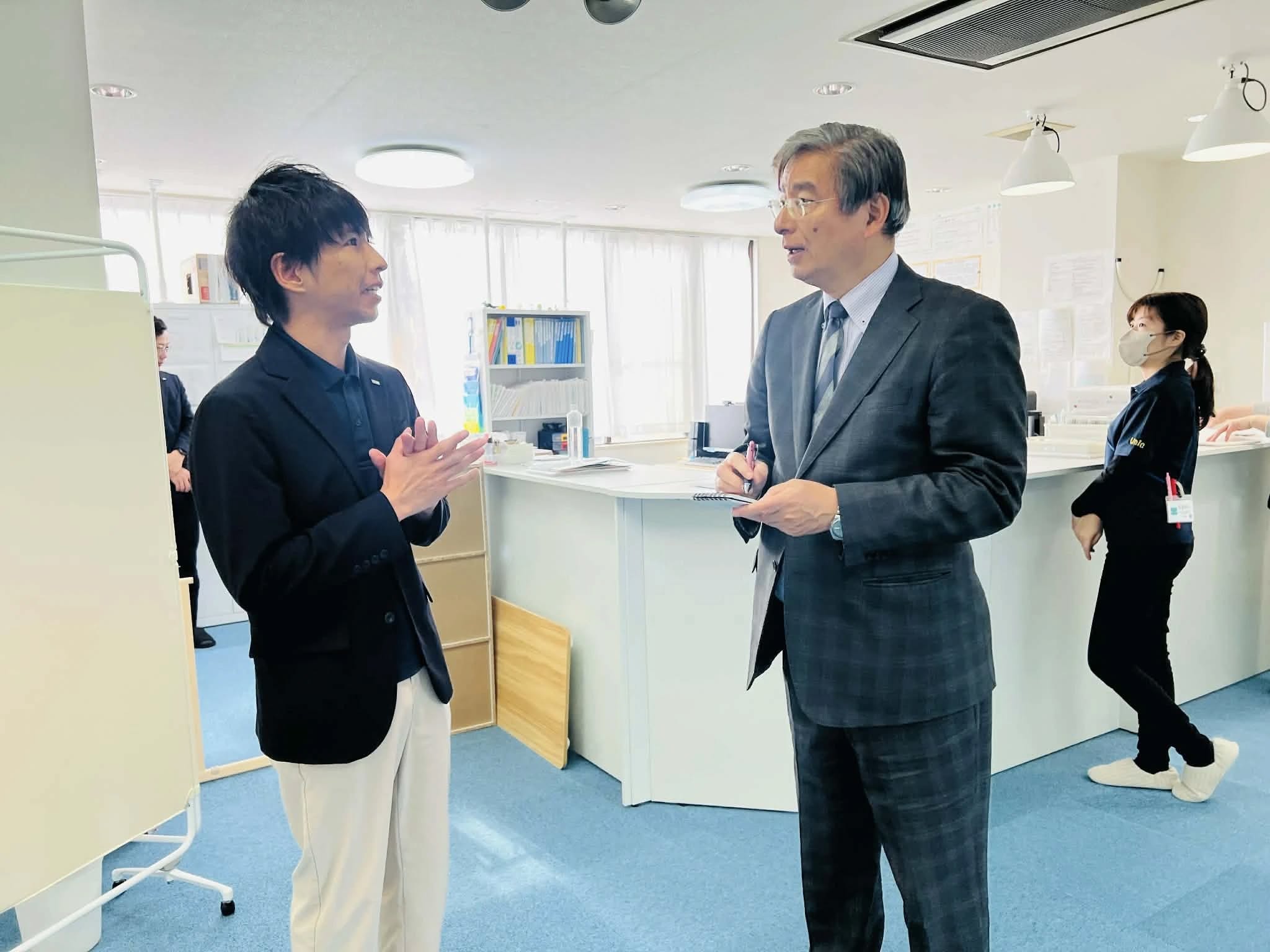 当日は、株式会社リニエの谷隆博社長、株式会社三輪書店(リニエR)の青山智社長、藤田康雄取締役、長瀬正幸サービス本部本部長、そして同施設の管理者である中野伸也様、京都橘大学の高畑進一教授にもご同席いただき、現場の取り組みや熱い想いを伺う貴重な機会となりました。
