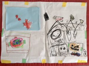 最終的にはこの中にお菓子を入れてお土産にすることを伝えると、「たのしみ~!!」と期待感を持っていました。