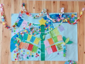 色とりどりのうちわが完成し、みんなの個性が光っていました。