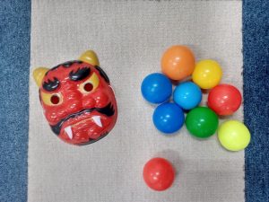 目的:2月の節分にちなんで、おにのパンツを作ることにより、季節を感じたり、絵の具を使ってデカルコマニーをすることで自由に表現することの楽しさを知る。