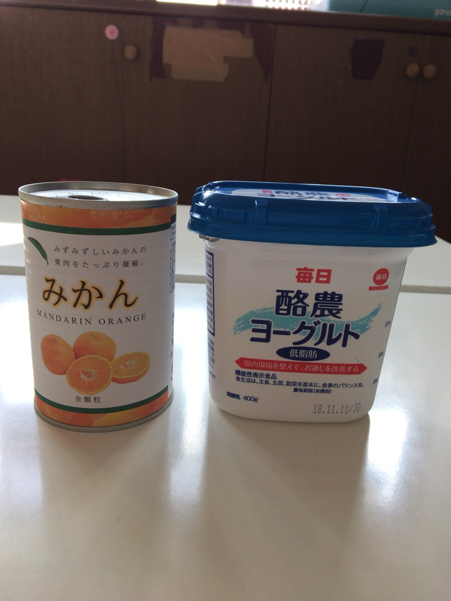 おやつのみかんヨーグルトを作りました 2018-11-09 最終更新日時 : 2018-11-09 NPO法人輝HIKARI 今日のおやつはみかんヨーグルトです。 今回はヨーグルトにおなじみの缶詰みかんの他にも、 2種類のフレークを用意しました。 ヨーグルトの下にお好みのフレークを入れて、ボリュームアップです。 チョコレートとシュガーのどちらか好きなほうを、好きなだけ下に敷いてから、ヨーグルトを足していきます。 子どもたちそれぞれ、自分のおなかにちょうどいい量にして、おやつを美味しく頂きました。 関連