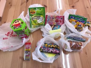 小分けのお菓子に値段をつけて、好きなものをお買い物する学習です♪