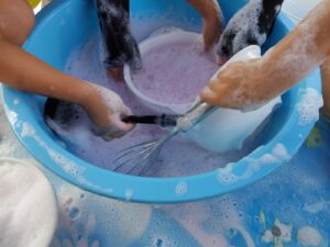 紙の端から端までをローラーを転がし、楽しみながら色づけをしました。