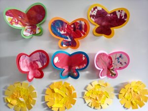 出来たこいのぼりを、紙コップにさし、楽しそうに机に並べていました。