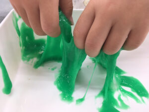 普段から迷路などの遊び絵本が好きなお子さんは図書館にある検索システムをスタッフと使って図書を探し、恐竜が好きなお子さんは恐竜がある棚を探して本を借りることができました。
