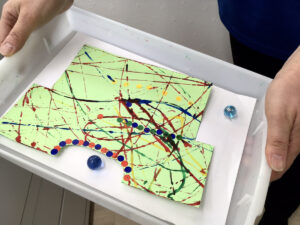 色とりどりのスーパーボールを夢中ですくう子どもたち。