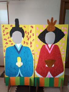 様子:3月3日のひなまつりにちなんだ製作を行いました。お内裏様とお雛様の顔が曲がらないように慎重に貼るお子さんもいれば、おかずカップを定規や手のひらでペッタンコにするのを楽しむお子さんもいました。お子さんたちの作品が出揃いましたので、掲載させていただきます。