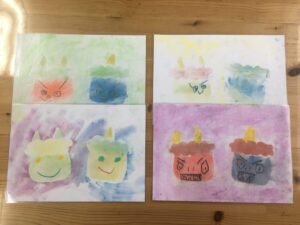 工程が多く長い時間がかかっていましたが、出来上がると「出来た〜!」と言い達成感を感じている様子が見られたり、どんな顔を描こうか悩みながらも楽しんで製作を行っていました。
