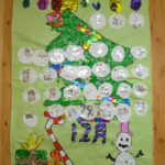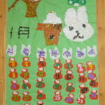 今回も、お子様同士でどんなカレンダーにするかを考え、下描きや日付や曜日の作成、折り紙を貼っていきました。