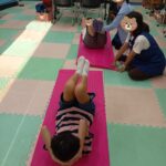 スタッフが投げたボールをジャンプして避けたり、「危ない〜!」と言いながら素早く足を上げてたりと全身を使いながらボールに当たらないように上手に避けていました!ボールに当たってしまった子どもたちはスタッフと一緒に残っているお友だちを狙いボールを「いけ〜!」と言いながら転がし見事に当てることができ大盛りあがりでした♪
