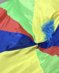 ①床に色のフープや色マット(=安全地帯)を適当に置く。