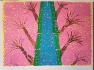 ジグザグの先を大股で踏むお子さん、小股で丁寧に歩くお子さん。