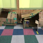 大きなダンボールを前に、「何を作ろうか?」とみんなで相談タイム。