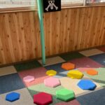 じゃんけんをして勝ったら1マス進んだり、マットの素材が気持ちいいのかゴローンと寝転がっているお子さんもいます。