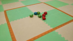 様子:絵の具が羽に落ちて、綺麗な模様が出来上がり、感動して「わーっ」と声が出たお子さんもいました。また、ハブラシの動かし方(前後、左右、円を描くようになど)によって模様が変わるのも楽しめていました。