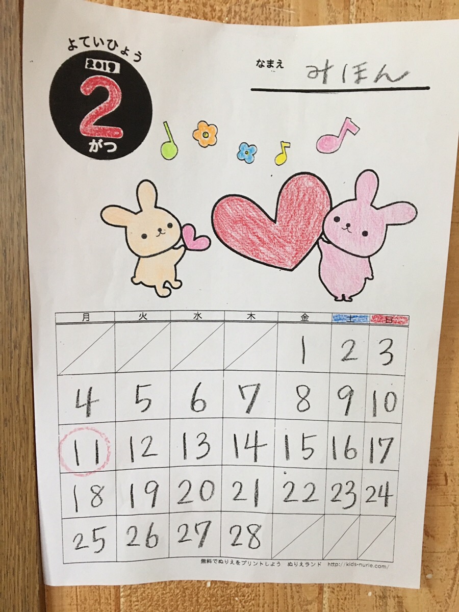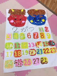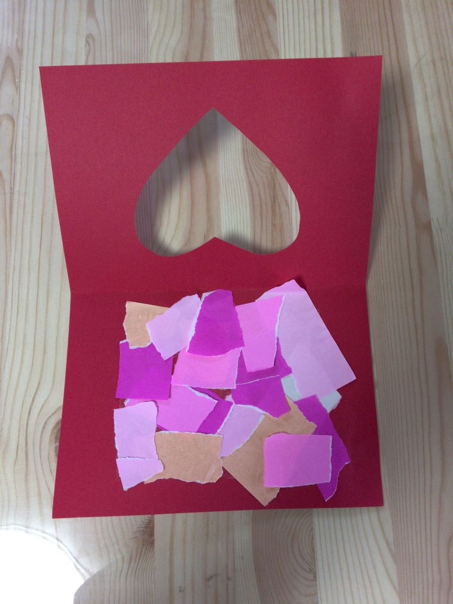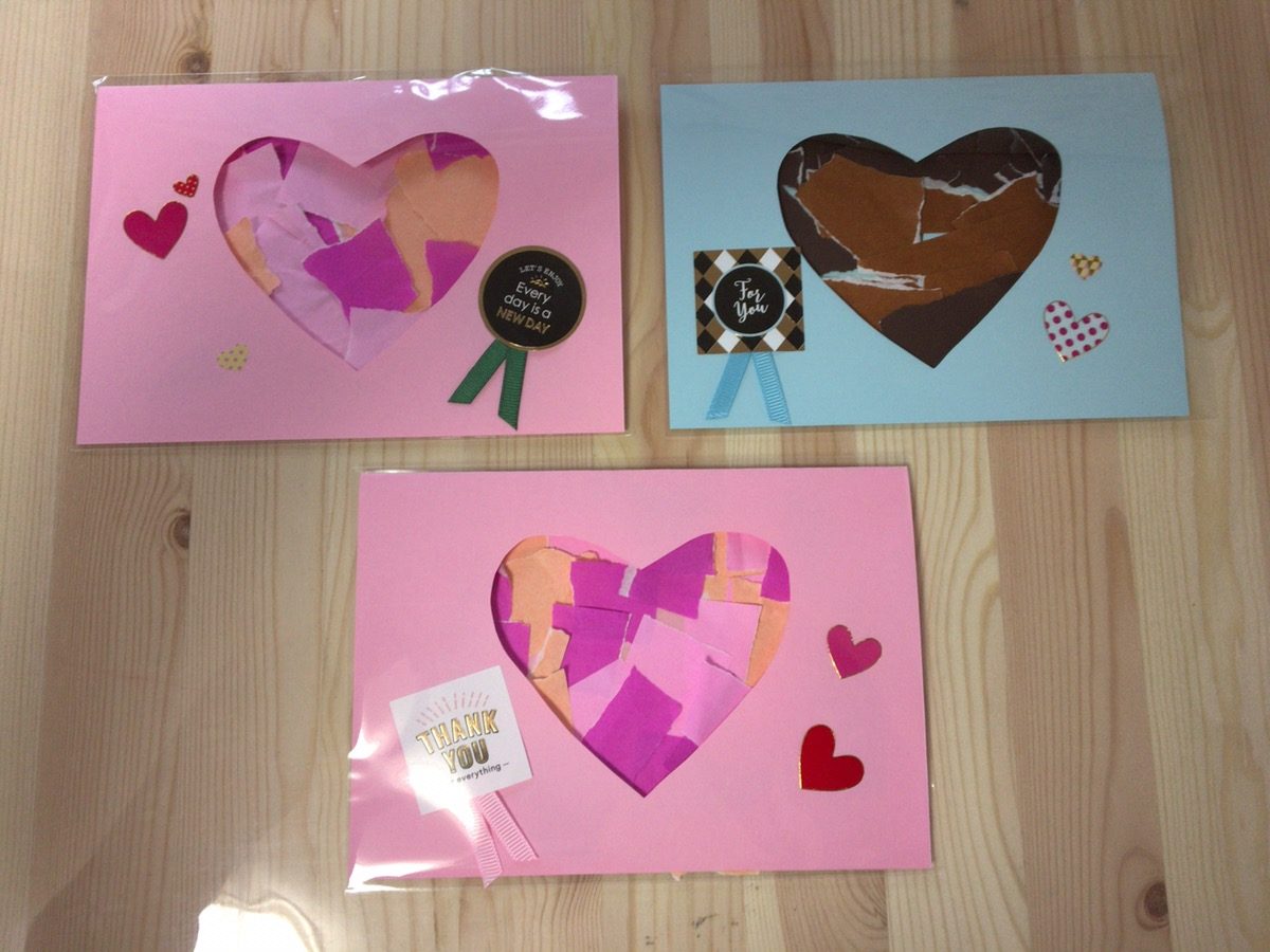 バレンタインカード作りをしました 2019-02-09 最終更新日時 : 2019-02-09 NPO法人輝HIKARI この日は子どもたちみんなで、バレンタインカード作りをしました。 好きな色を3色選んだ折り紙を手でちぎり、台紙に貼った両面テープを剥がして、ちぎった紙をペタペタはりました。 予めスタッフがハートにくり抜いておき、表紙の部分を戻し、シールで仕上げて完成です。 色とりどりのバレンタインカードができあがりました。 今週は2月のカレンダー制作もしました。 こちらもハートマークに、子どもたちそれぞれ好きな色ぬりをして仕上げました。 関連