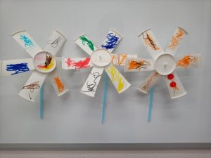 お湯を沸かし、カップ麺の容器に注ぐまでの作業をお子様が行いました。
