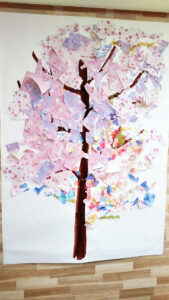 ヒラヒラと揺れるテープがキレイだったり面白いだけでなく、テープに触るとガサガサと不思議な音もします。