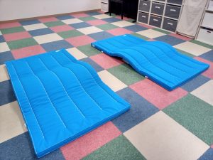 初めて見たお子さんはすぐに入りたがり、通り抜ける時の揺れを楽しんでいました。また、横から押せば転がることに気づいて押したり、自分の力で転がって室内を往復して楽しみ、もう一度やりたくて順番待ちができたお子さんもいました。