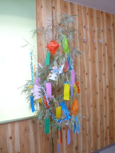 ケーキは生クリームや星型のカラースプレー、すミックスベリーを飾り天の川に見立てました。