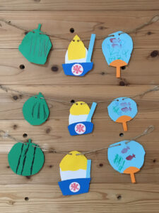 みらいキッズのお子さんたちも短冊にシールを貼ったり、絵を描いたり、お願い事を書いたり、スズランテープを割いたりして、キラキラ光る流れ星のような短冊を作ってくれました。