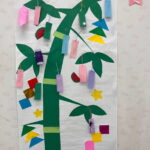 出来上がった作品を笹の木に飾り付けて完成!子どもたちは「わぁ、きれい!」と感動しながら、満足そうに自分たちの作品を見上げていました。みんなの願いが叶いますようにと、心を込めてお祈りしました。
