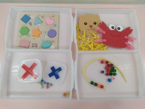 普段行っている微細運動や制作活動等の机上課題に取り組んでいる様子を見ていただいたり、運動課題で利用しているブランコ(吊り遊具)をお子さんと一緒に乗り、実際に体験していただく時間も設けました。