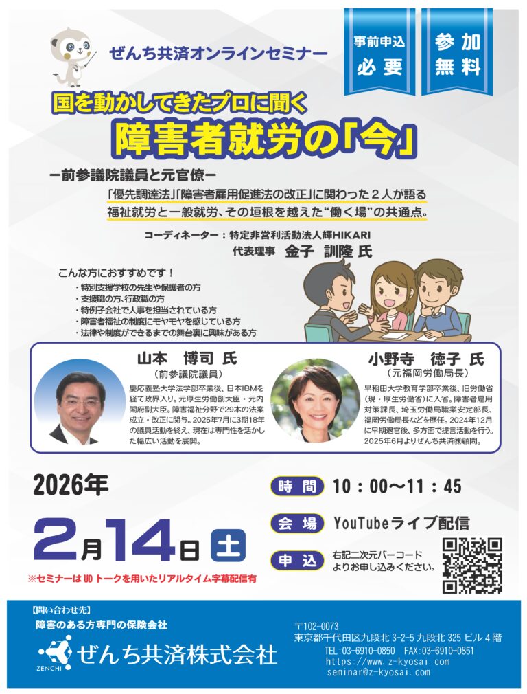 国を動かしてきたプロに聞く障害者就労の「今」:セミナー案内(ぜんち共済主催)