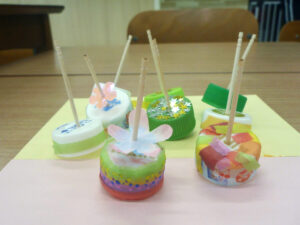 自由遊びや設定遊びの時間に一人ひとり、好きなキャラクターのイラストを塗り絵しました。