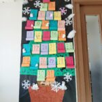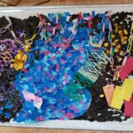 仕上げに、青いビニールテープでつくった“海”に魚たちを貼り付けると、壁面いっぱいに幻想的な海の世界が広がりました。