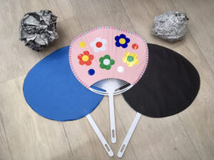 お子様達が分担をし、ハサミで様々な大きさや形に切る作業や花紙を丸めて文字を作る作業などに分かれて製作を行いました。