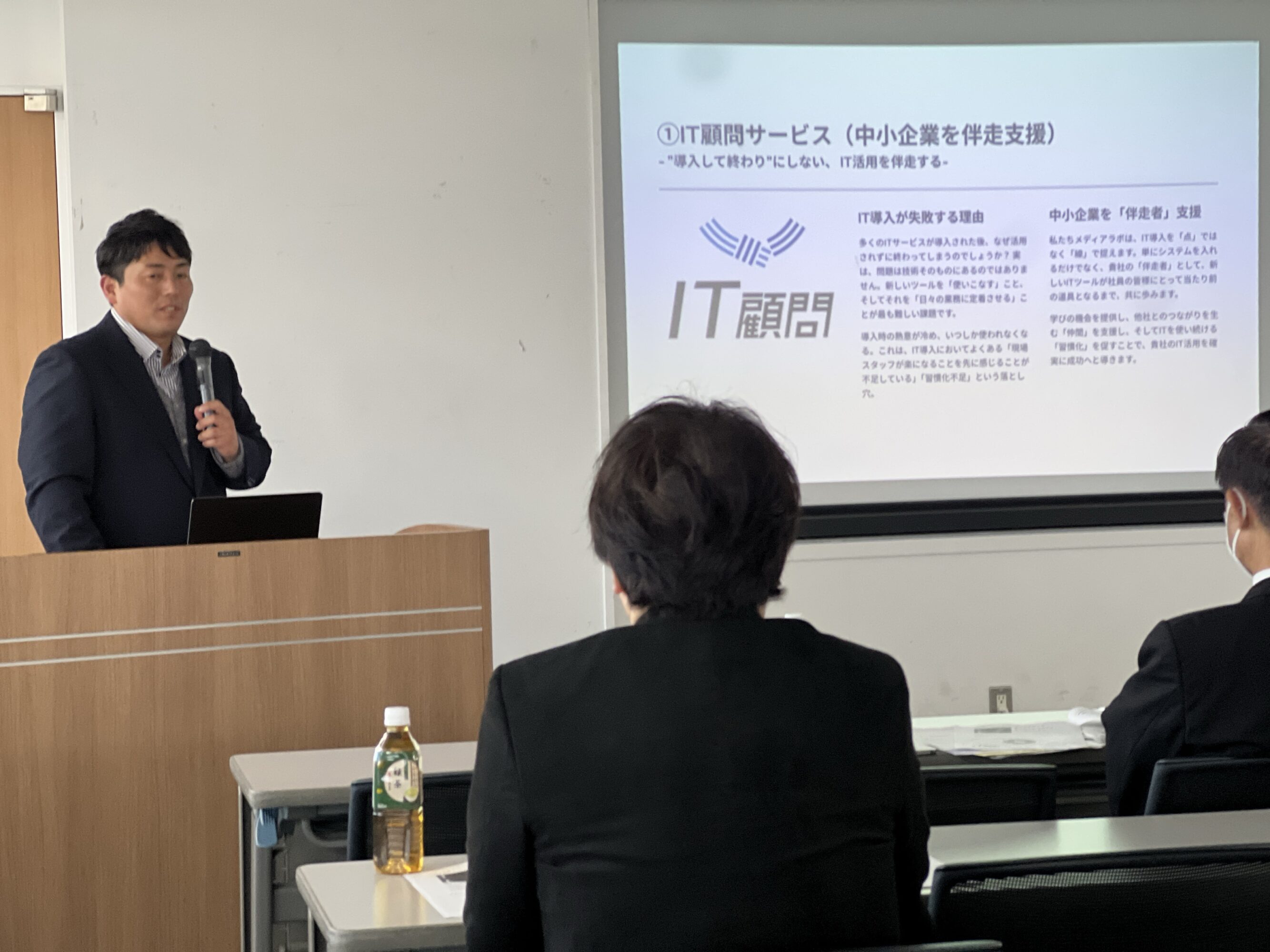 「たちかわIT交流会」は、東洋システム株式会社の飯田哲郎社長が会長を務められ、2004年の発足以来、「ITのまち立川」としての産業発展を牽引されてきた歴史ある会です。市内には約150社ものIT企業が集積しており、その熱気を感じる場でした。
