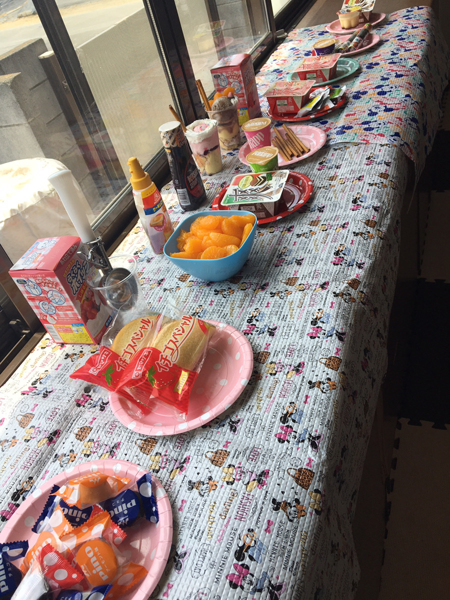 内容 手作りおやつ(パフェ)ビュッフェ形式にして、お子様達が好きなトッピングを選び、各自のオリジナルパフェが出来上がりました。