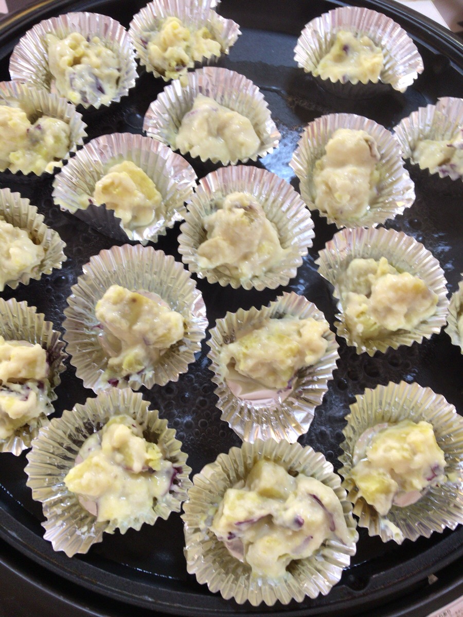 手作り鬼まんじゅうに挑戦しました 2018-11-15 最終更新日時 : 2018-11-15 NPO法人輝HIKARI この日の調理実習は、手作りの鬼まんじゅうに挑戦しました。 さつまいもを刻んで、塩・砂糖・小麦粉の生地とよく混ぜます。 子どもたちにはアルミカップに入れる作業をお手伝いしてもらいました。 ホットプレートで蒸し焼きにして出来上がりです。 食べごたえがあって秋らしい味の手作りおやつを、みんなでおいしく頂きました。 関連