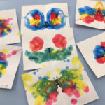 紙皿に好きな絵を描いて、ストローをつけて、クルクル回すとキレイな模様が浮かび上がりました。