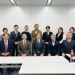 運動型療育を視察する山本(中央左)、輿水(右隣)の両氏=24日 さいたま市