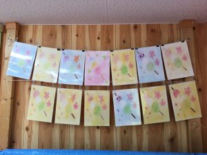 卒園制作ということで、年長さんたちで桜の作品を作りました。