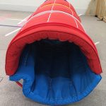 先生の説明や実演だけでなく、視覚的に確認できるように足型を置くことで、子どもたちが自信を持って進むことができるように工夫しました。