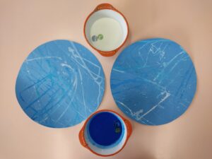 段ボールをつなぎ合わせて輪になるように作り、中に入ってハイハイの動作で前進する活動です。