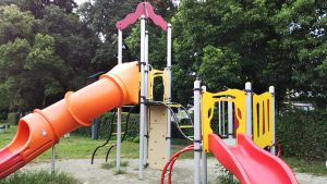 様子:オーシャンスイングを斜め掛けしてある所に、どうやって登ろうかと考えて脚をかけたり、トンネルに両腕を入れてからジャンプして飛び込んでいったりと、お子さんそれぞれに遊び方があり、お尻で滑ったり、頭から滑ったりしてスリルを楽しみました。