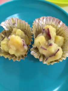 この日はとっても天気がよかったので、芝生にレジャーシートを敷いてみんなでおやつを食べました(^^)