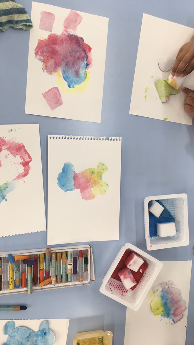 シールを貼ったり顔を描いたりして、子どもたちみんな思い思いの冬の花と雪だるまを作ってくれました(^^)