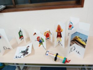 集めたどんぐりはお砂場で作ったケーキやアイスにトッピングして、秋の自然を遊びに取り入れて楽しんでいました。