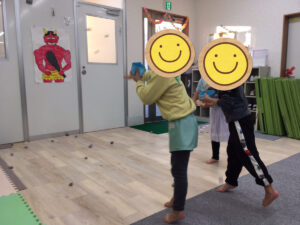 今回は『部屋中を鬼の顔でいっぱいにしよう』をテーマに鬼の顔の壁面製作に取り組みました。