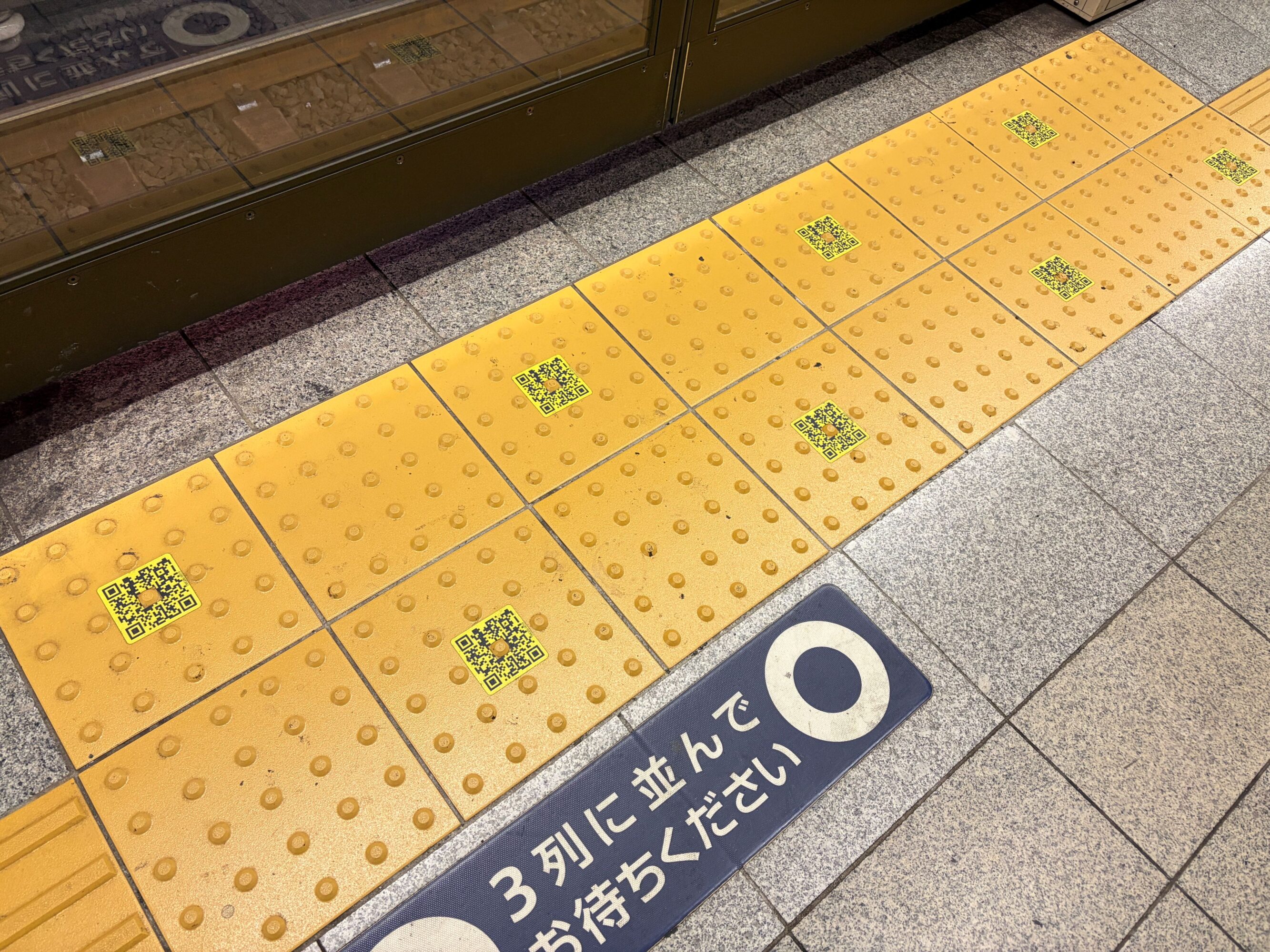 - QRコードの設置: 駅構内の点字ブロック(特に分岐点や階段の手前)に、耐久性の高い専用のQRコードが貼られています。