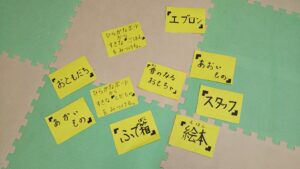 雛祭りの日に合わせ、ハサミなどを使う指先の運動と顔を描くことを目的に工作を行いました。紙コップに三角形に折った折り紙を巻き付け、紙コップを半分に切り、思い思いのお雛様とお内裏様の顔を描きました。お子さん達は折り紙を綺麗な着物のように貼り付けることができていました。紙コップを切る作業では、いつも切っている紙とは違う感覚の紙コップに苦戦するお子さんもいましたが、上手に半分に切ることができました。お顔を描く際にはお子さんの個性が出ていて、普段からお絵描きを楽しんでいるお子さんにとっても活躍の場となりました。それぞれで作ったお雛様とお内裏様を見て、お子さん達は「可愛いー!」と話していて、季節のイベントを楽しむことができました。