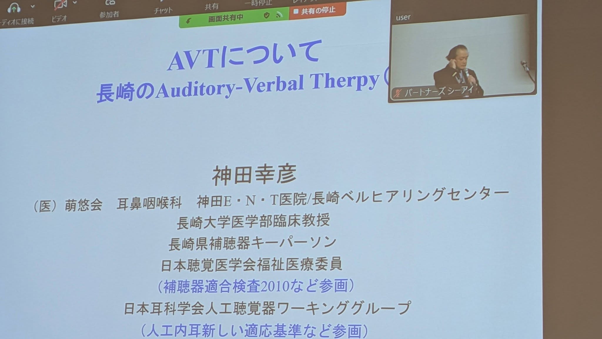 続いて、声援隊顧問の神田幸彦先生(神田E・N・T医院院長)による講演「AVT(オーディトリーバーバルセラピー)について」が行われました。AVTは、五感をフル活用して日常生活の中で「聴く力」を育むアプローチです。「特別な教材は必要なく、家族の自然な会話が最高の学びになる」という先生の言葉は、多くの保護者に勇気を与えるものでした。
