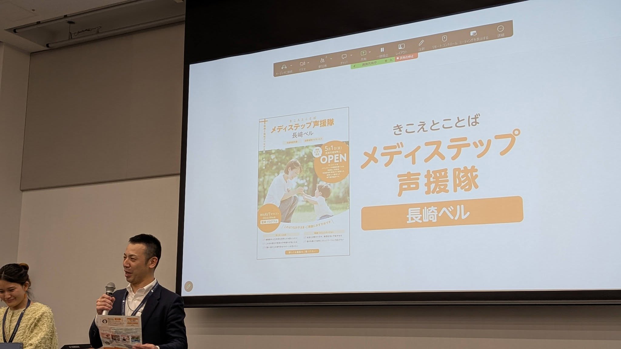 池田氏は、中学生時代に「声援隊」と出会ったことが人生の転換点となり、現在はドイツでの留学経験を活かして保護者の孤独を和らげる活動をされています。また、家住氏は難聴の娘を育てる中で「声援隊」に救われた経験から、本年5月1日に長崎市で新しい発達支援事業所「メディステップ声援隊長崎ベル」をオープンさせる予定であることを報告されました。