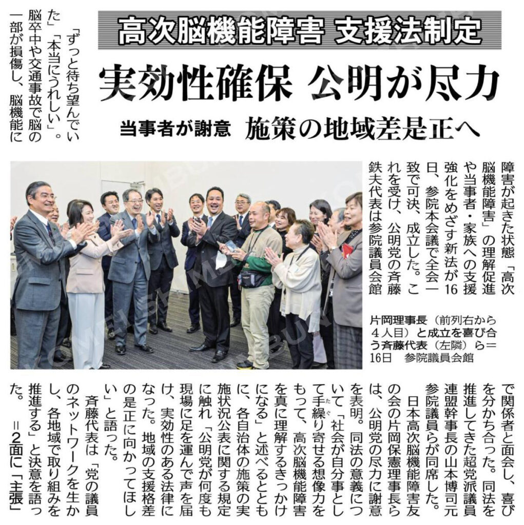 昨年12月16日、参議院本会議で「高次脳機能障害支援法」が全会一致で可決・成立しました。これは、私たち支援に関わる者や当事者・家族にとって、長年の悲願が形になった大きな一歩です。