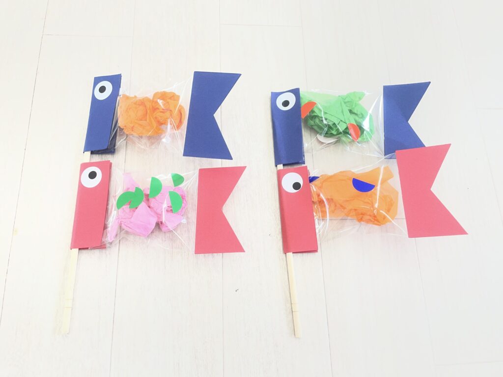 そんな沢山の子どもたちが健やかに成長するよう願いを込めて、4月の立体製作は複数の中から自分の好きなものを選んで相手に伝える「選択」をテーマに「こいのぼり」を作りました。